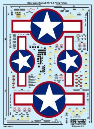 B-17F/G Red Outlines Stars and Bars - Comprehensive General stencilling including Cockpit instrumentation, Fuel tank hatch info, Propeller logos, Black walkway lines, Life raft & data panel, Stars and Bars and more!