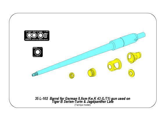 1:35 Barrel for German 8,8cm Kw.K 43 (L/71) gun used on Tiger B Serien-Turm and Jagdpanther Late