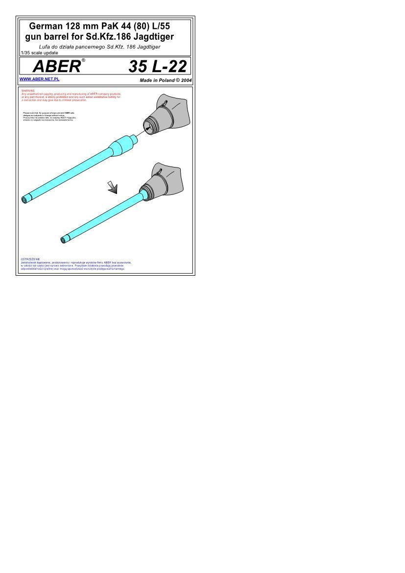 1:35 German 128mm Pak 44 (80) L/55 gun barrel for Sd.Kfz.186 Jagdtiger