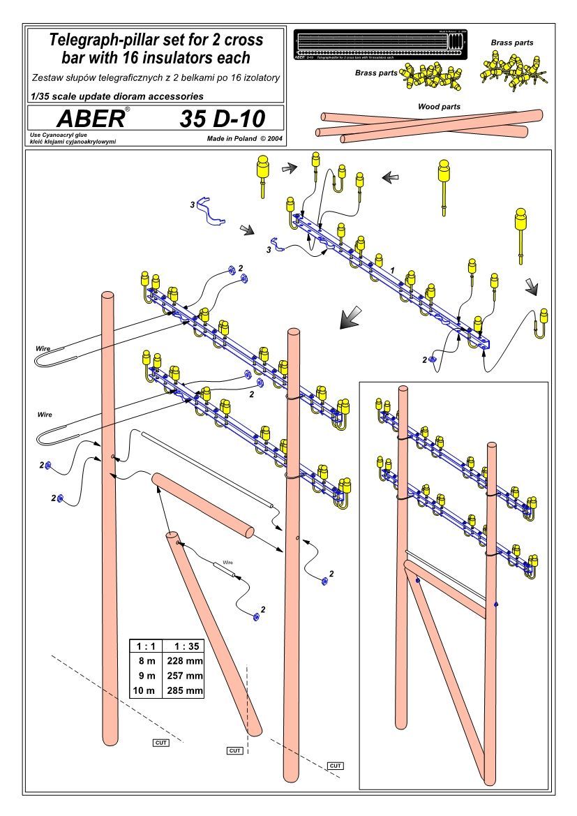 1:35 Telegraph - pillar set for 2 cross bars with 16 insulators each