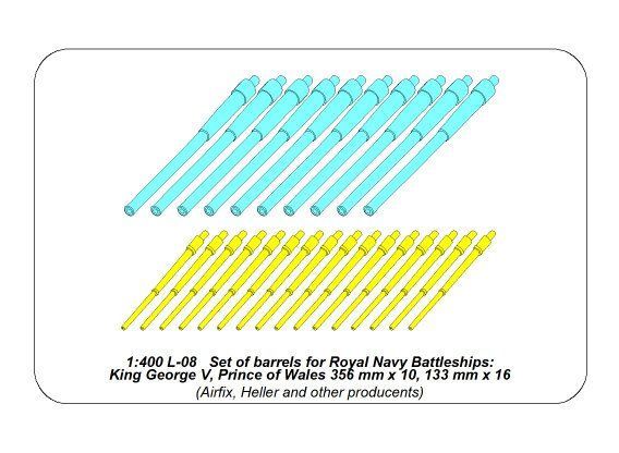 1:400 Set of barrels for Royal Navy Battleships King George V, Prince of Wales 356 mm x10,133 mm x16