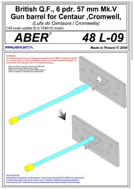 1:48 British Q.F., 6 pdr. 57 mm Mk.V gun barrel for Centaur, Cromwell