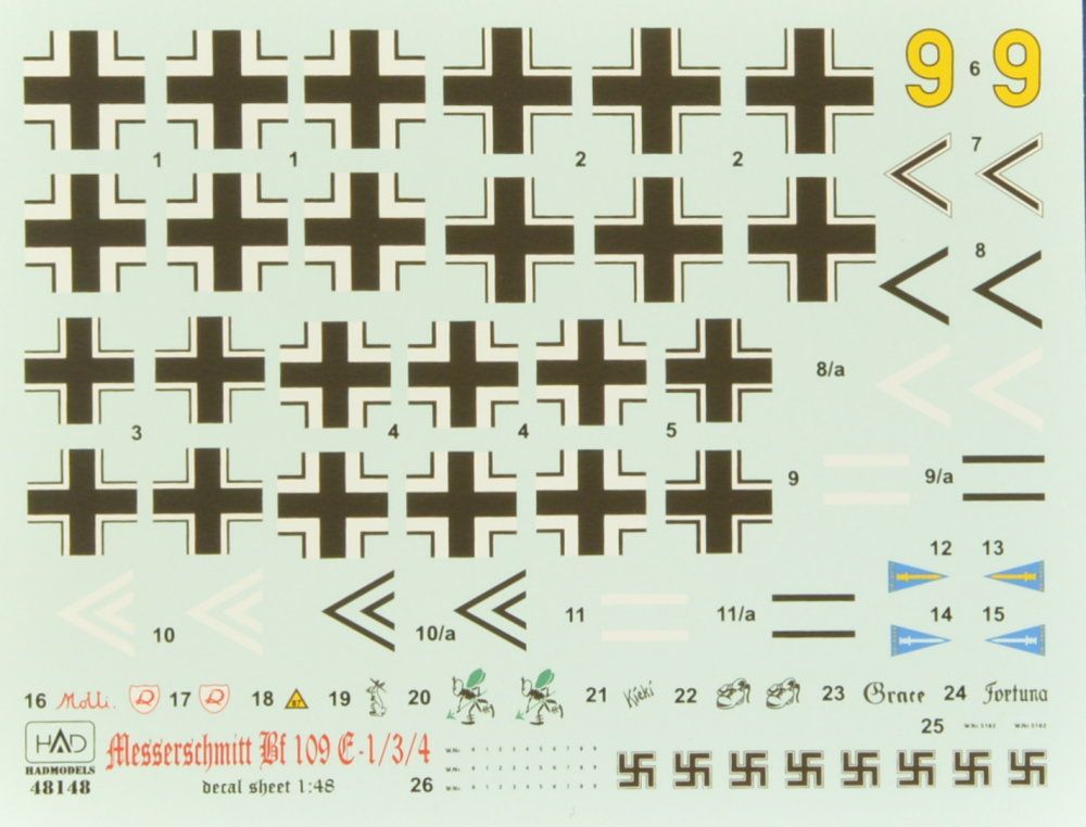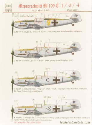 1:48 Decal Bf 109E1/E3/E4 (4x camo) Part 1