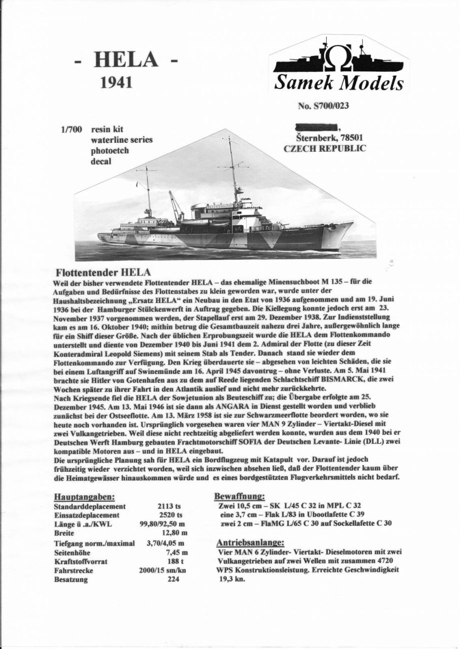 1:700 Flottentender Hela Germany 1941