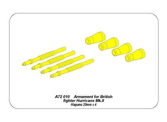1:72 Armament for British fighter Hurricane Mk.II; Hispano 20mm x 4