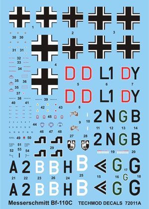 • Bf 110C, 2N+GB, I./ZG 1, Hauptmann Wolfgang Falck, Luftwaffe, Aalborg-West, Denmark, April 1940
