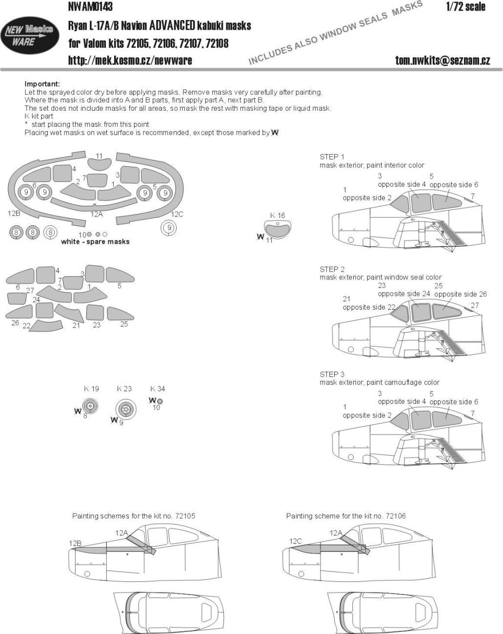 1:72 Ryan L-17 A/B Navion ADVANCED kabuki masks