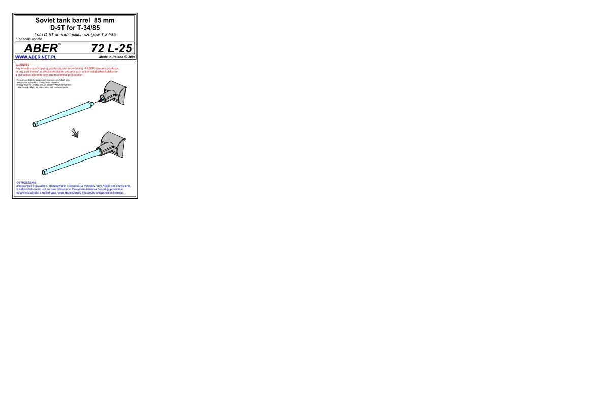 1:72 Soviet tank barrel 85mm D-5T for T-34/85