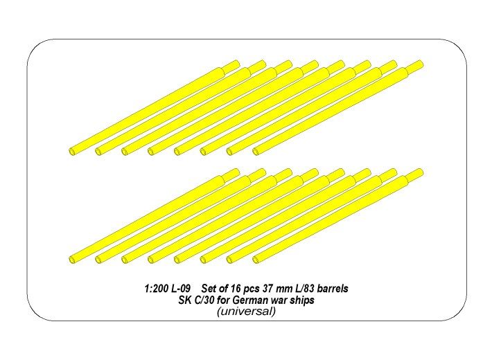 1:200 Set of 16 pcs 37 mm L/83 barrels SK C/30 for German ships