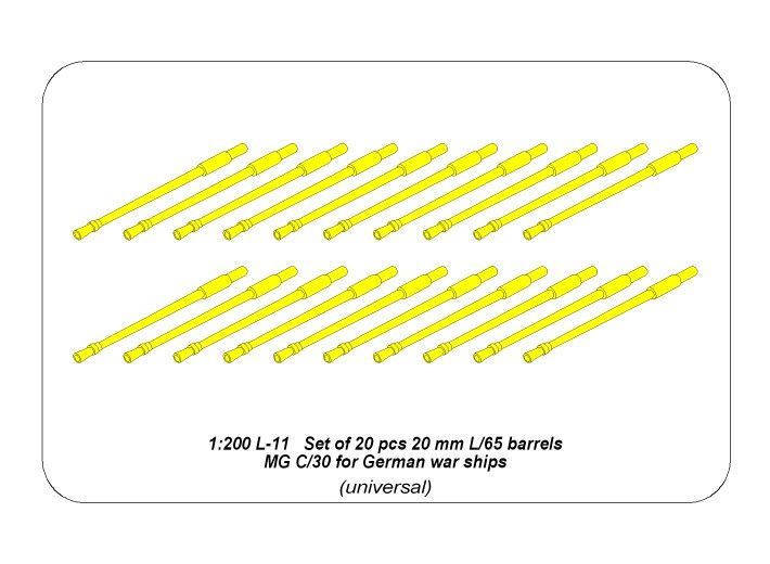 1:200 Set of 20 pcs 20 mm L/65 barrels MG C/30 for German ships