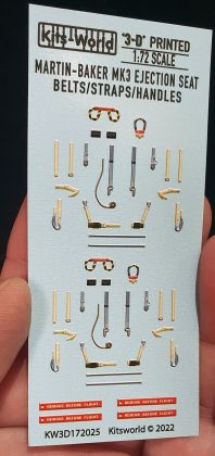 1:72 Martin-Baker Ejection Seat Mk.3, Hawker Hunter, Canberra,Vampire, Victor, Vulcan Gloster Javelin Valiant.Full Colour 3D Seat Belt decals