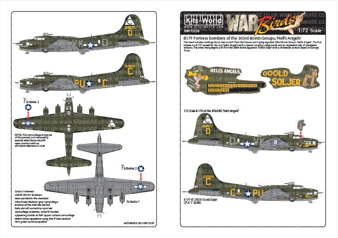 1:72 Scale Boeing B-17F Flying Fortress Decal Sheet