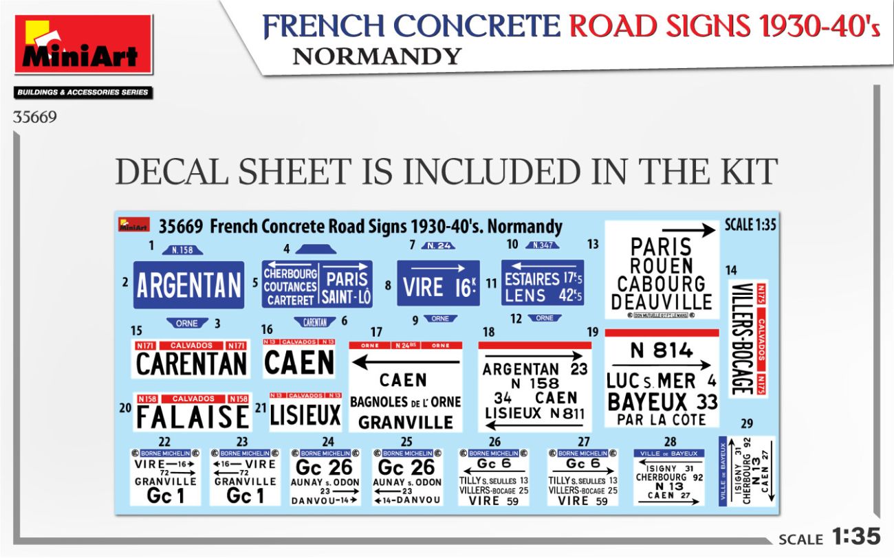 1:35 35338 Sturmgeschutz III Ausf. G APRIL 1943 ALKETT PROD. INTERIOR KIT38059 TEMPO E400 STAHLBLECHPRITSCHE 3-WHEEL TRUCK FRENCH CONCRETE ROAD SIGNS 1930-40’S. NORMANDY