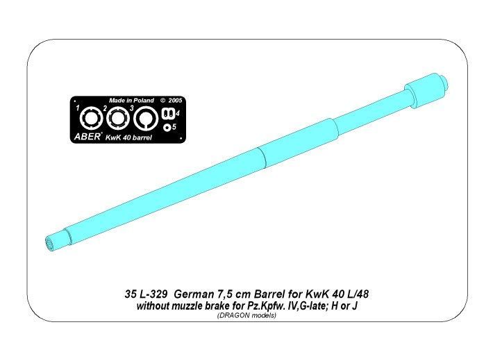 1:35 75 mm Barrel KwK 40 L/48 Without Muzzle Brake for Panzer IV Ausf. G, H and J
