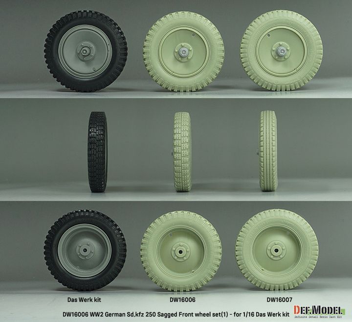 1:16 WW2 German Sd.Kfz 250 Sagged Front Wheel Set (2) - (For Das Werk Kit)