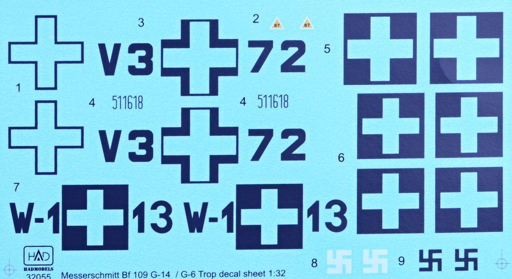 1:32 Decal Messerschmitt Bf 109 G-6 trop/G-14