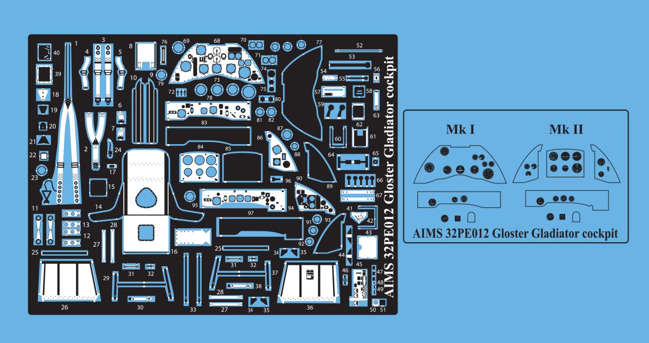 1:32 Gloster Gladiator Mk.I/Mk.II/Sea - Cockpit Details Set (designed to be used with ICM kits)