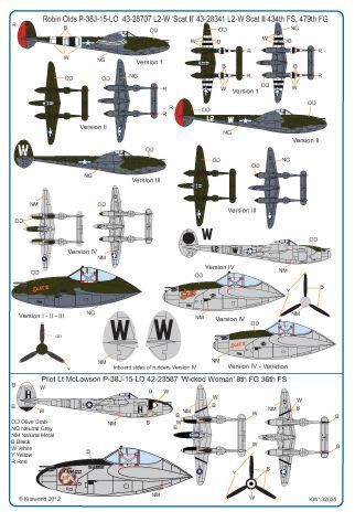 Robin Olds P-38J-15-LO 43-28707 L2-W 'Scat II, 43-28341 L2-W Scat III 434th FS,479th FG May 1944