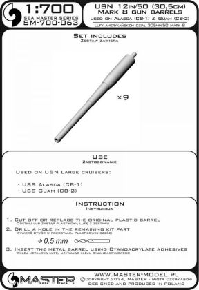 1:700 9 x USN 12 in/50 Mark 8 Gun Barrels for USS Alaska & USS Guam