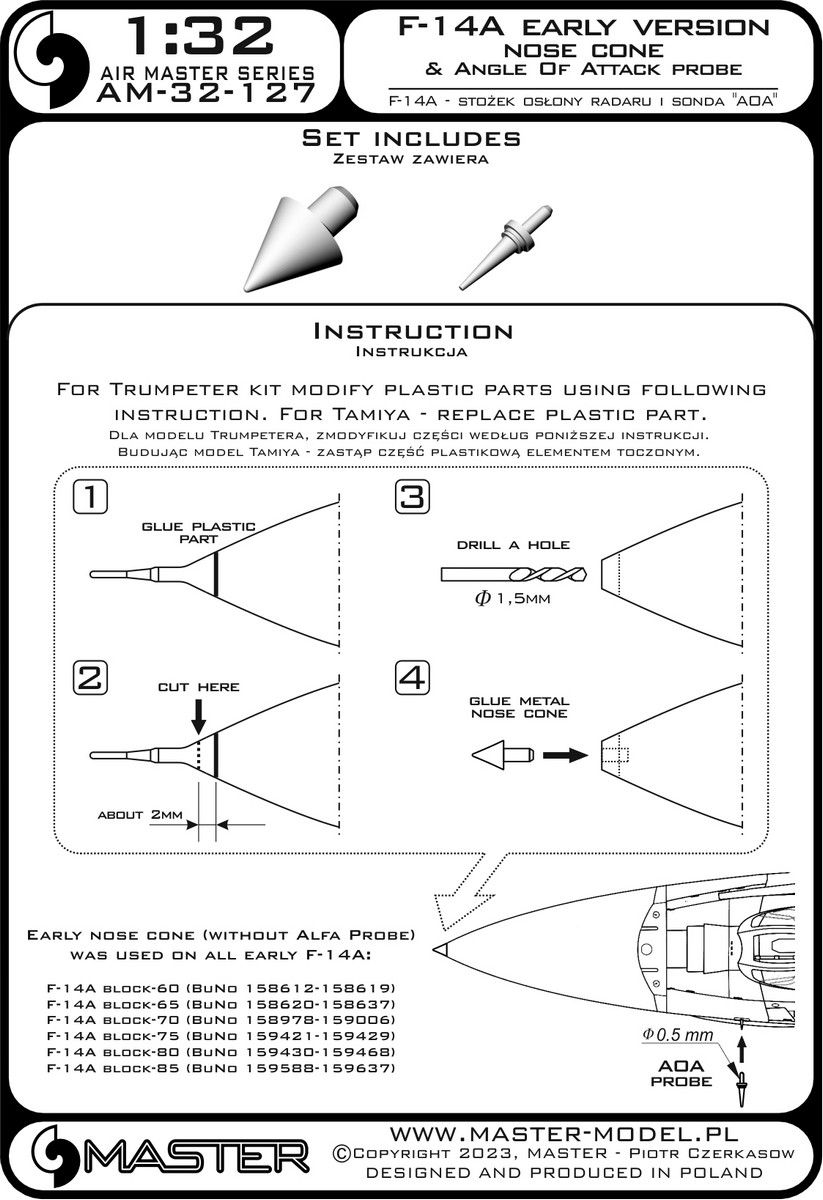 1:32 F-14A Early Version Nose Tip & Angle of Attack Probe