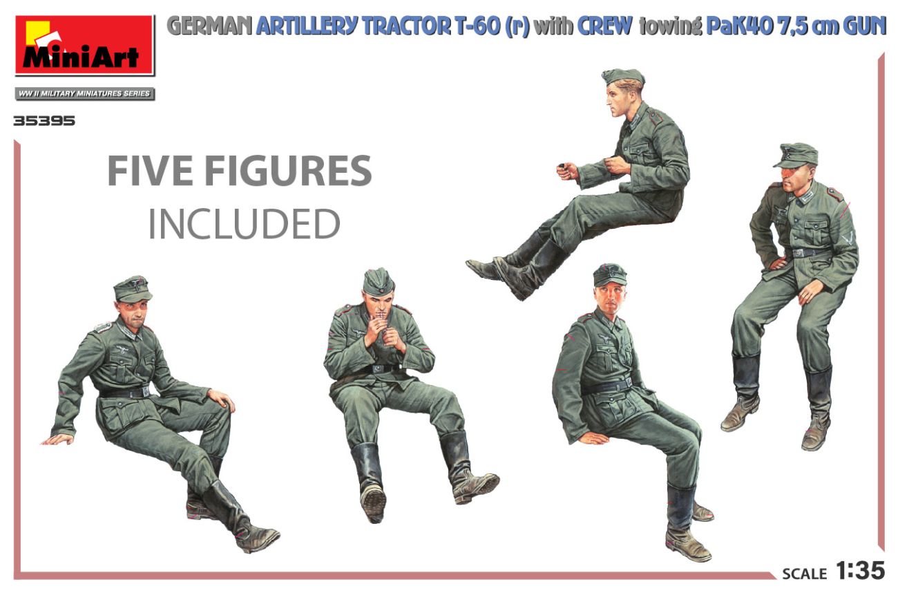 1:35 36065 COBBLESTONE ROAD WITH TRAM LINE35642 EUROPEAN FARM CART GERMAN ARTILLERY TRACTOR T-60(r) & CREW Towing PaK40 GUN