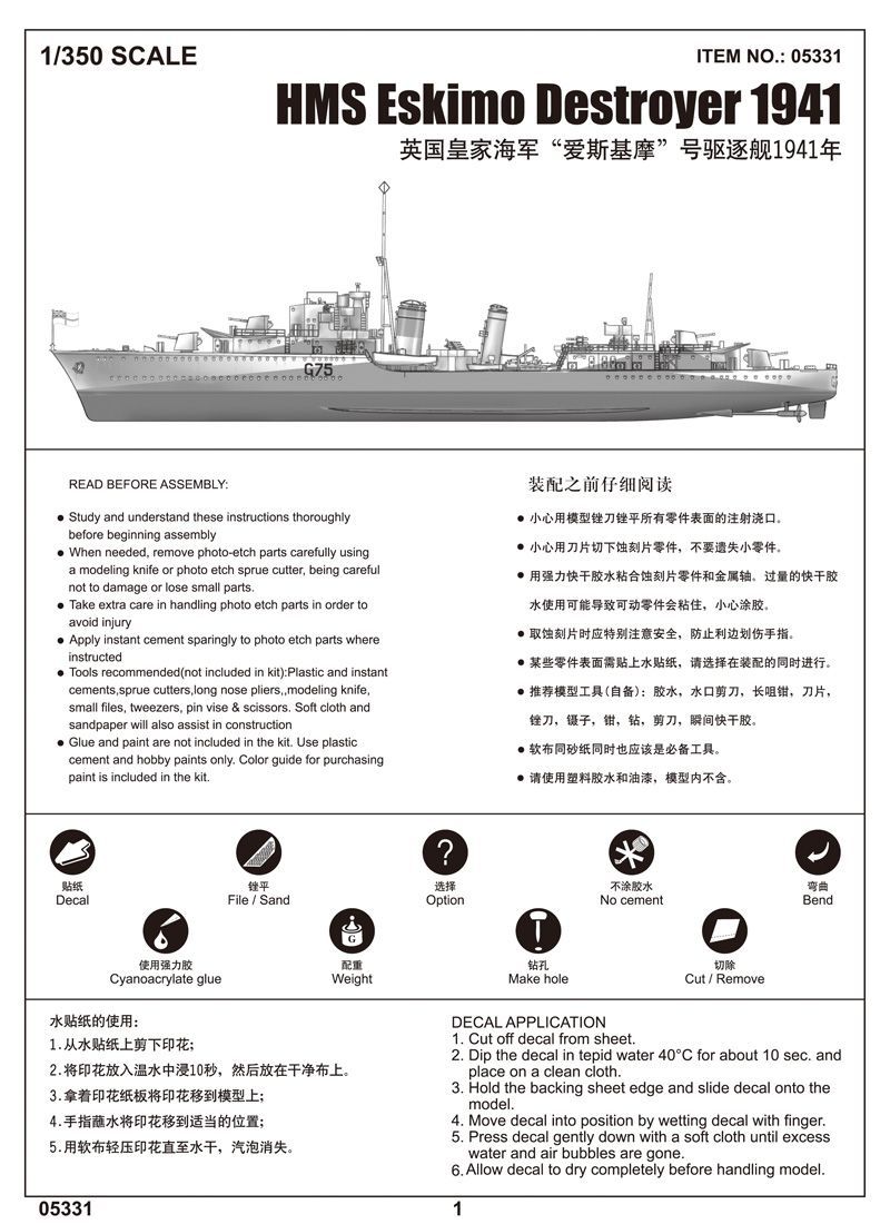 1:350 HMS Eskimo Destroyer 1941