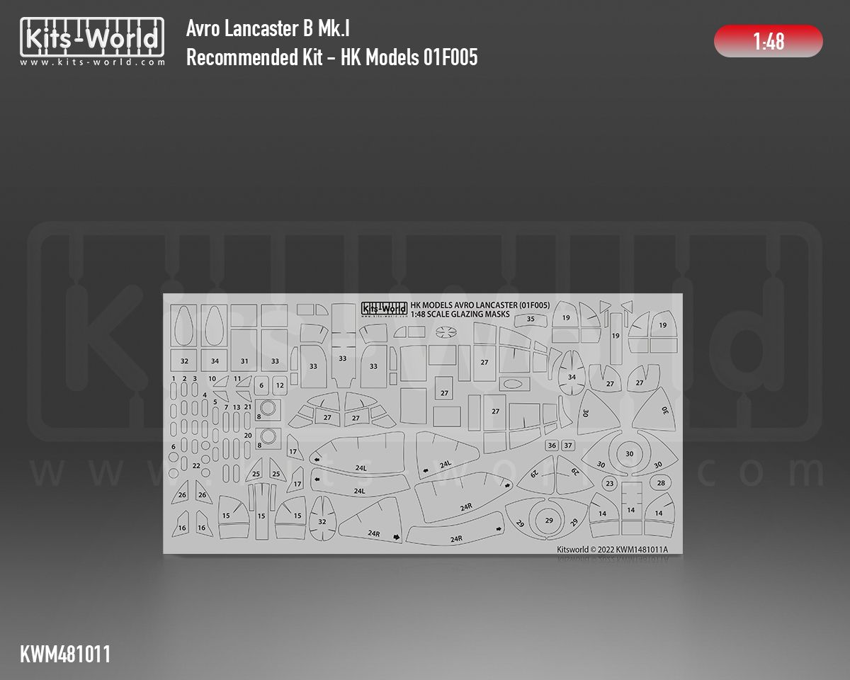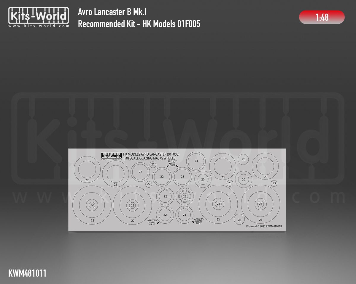 1:48 Avro Lancaster B Mk.I wheels and canopy paint mask outside only (for Hong Kong Models 01F005 kit)