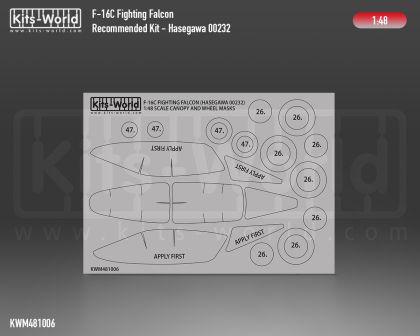 1:48 F-16C Fighting Falcon wheels and canopy paint mask outside only (for Hasegawa 00232 kit)
