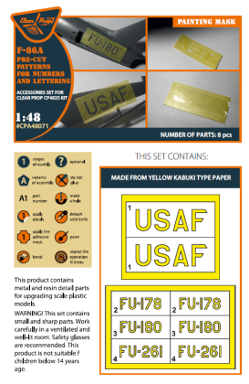 1:48 F-86A Sabre pre-cut patterns for numbers and lettering painting mask on yellow kabuki paper for CP4825 kit