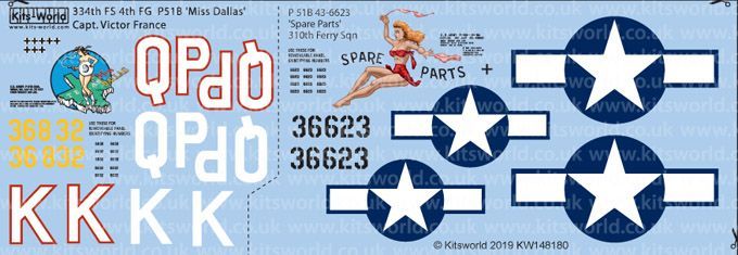 P-51B Mustang 43-6832 QP-K 'Miss Dallas' Capt Victor France, 334th FS 4th FG.