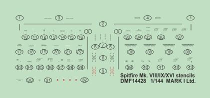 1:144 Supermarine Spitfire Mk.VIII/Mk.IX/Mk.XVI stencils