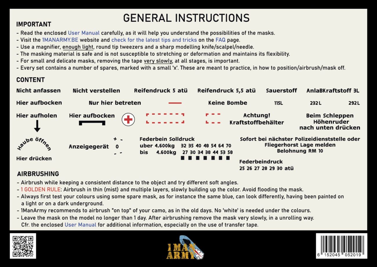 1:48 Focke-Wulf 190 A-Series - High Definition Airbrush Masks Maintenance Data Stencils General Set