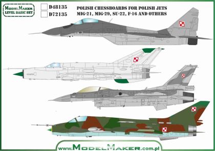 1:72 Polish chessboards for Polish jets MiG-21, MiG-29, Su-22, F-16 and others