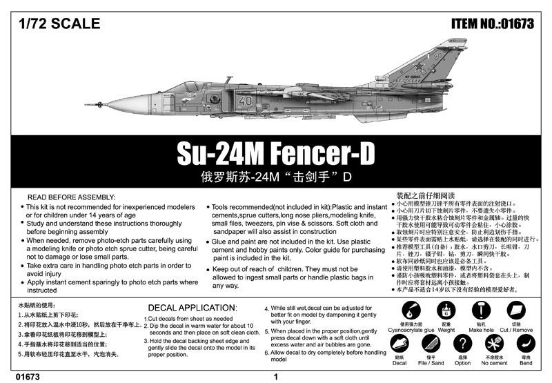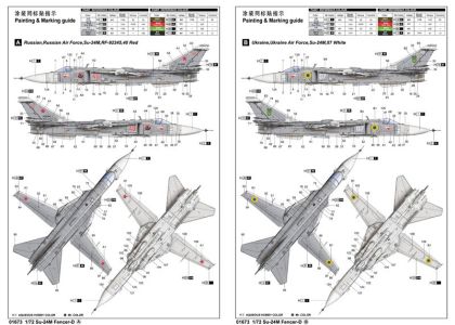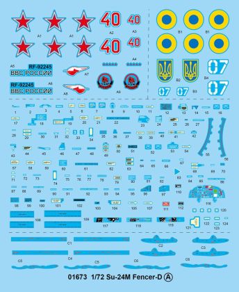 The Su-24 tactical Bomber was designed by Sukhoi OKB. It`s an all-weather, low-level attack aircraft which known by the NATO codename 'Fencer'. The aircraft has a conventional aerodynamic configuration with a variable-sweep shoulder wing, side-mounted intakes and two-seat cockpit. The first production aircraft flew on 31 December 1971. The total production of the Su-24 was about 1,400 planes and the aircraft is in service with the Russian Air Force and Navy, and the air forces of Azerbaijan, Algeria, Belarus, Kazakhstan, Libya, Syria and Ukraine.