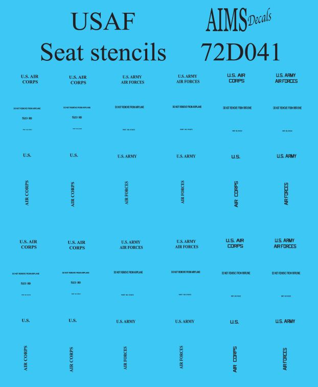 1:72 USAF seat stencils - use lower pack stencils only on bombers