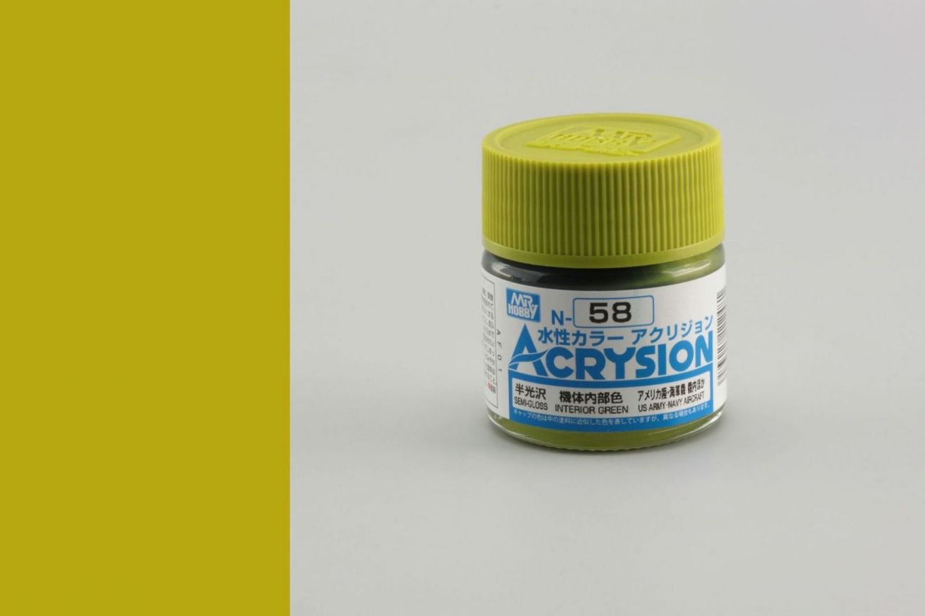ZNAČENÍ V modrém poli nad názvem řady ACRYSION je v bílém rámečku číslo barvy. V bílém poli pod názvem řady uprostřed je název barvy. Vlevo od názvu je uvedeno, zda je barva matná (FLAT), lesklá (GLOSS), pololesklá (SEMI-GLOSS) nebo metalíza (METALIC). Vpravo od názvu je uvedeno užití. PRIMARY=základní barvy, AIRCRAFT=letadla, CAR=auta, TANK=tanky a bojová technika, SHIP=lodě, WEATHERING=patinovací barvy. V případě letadel, bojové techniky a lodí je uveden i stát a období používání barvy.