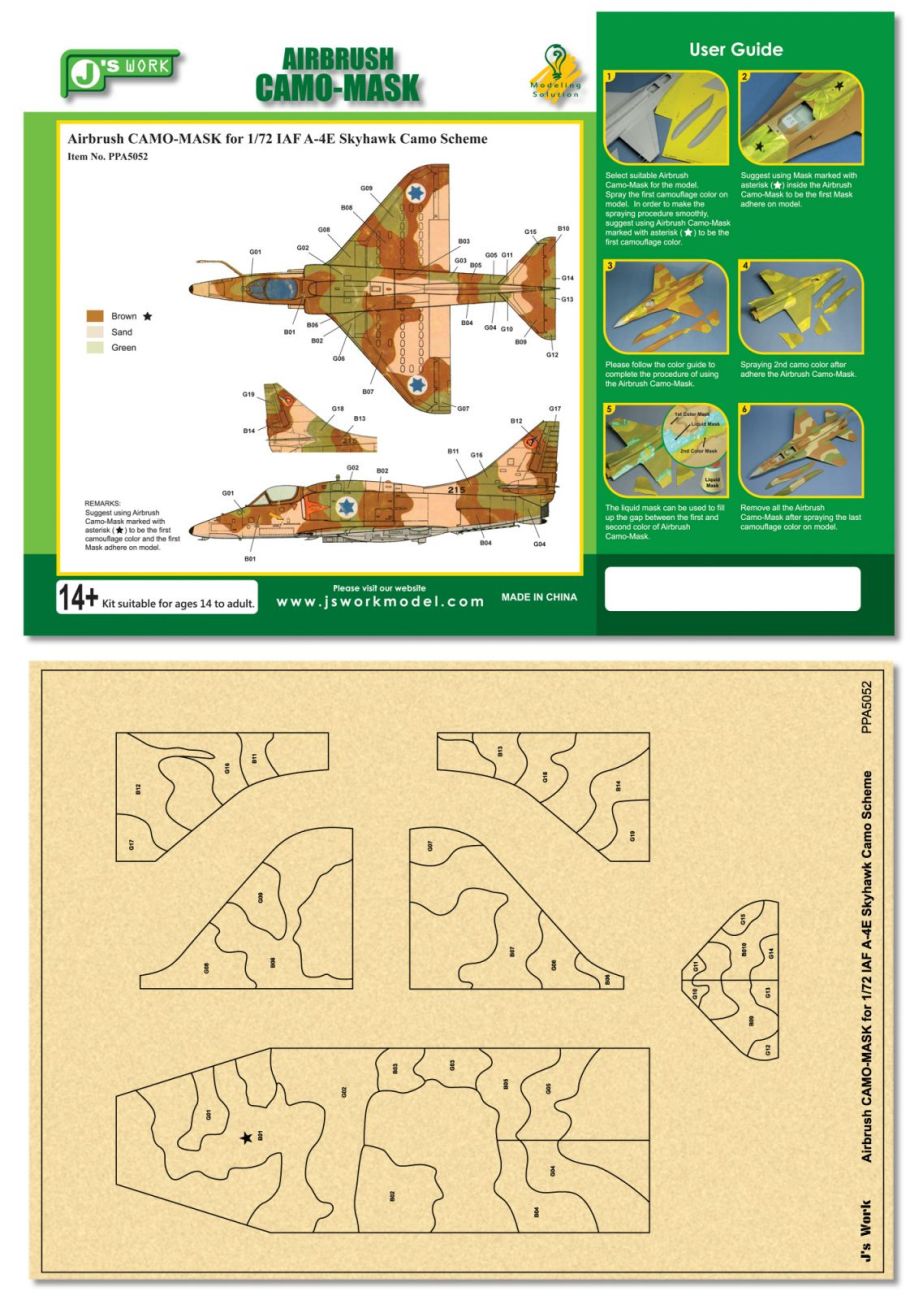 Airbrush CAMO-MASK for 1/72 IAF A-4E Skyhawk Camo Scheme