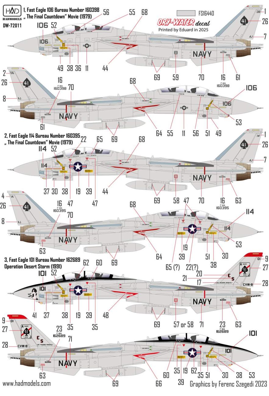 1:72 F-14A Vf-41 Black Aces decal sheet