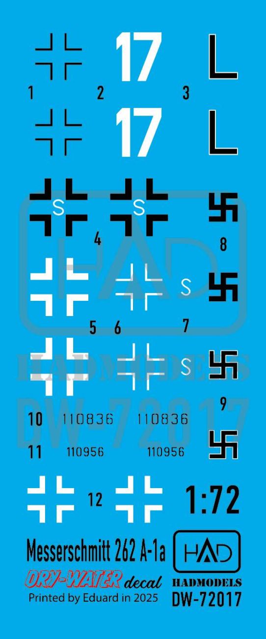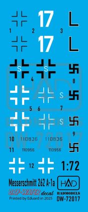 1:72 Messerschmitt Me 262 A-1 (Luftwaffe black L, white 17) decal sheet
